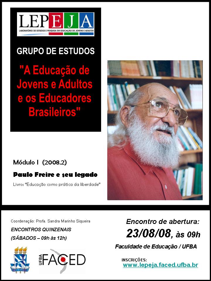 | > > | Próximo encontro do GE LEPEJA: 20/09/08 (sábado), às 09h na Faculdade de Educação da UFBA, quando será realizado um debate em comemoração ao aniversário de Paulo Freire. | ||||||||